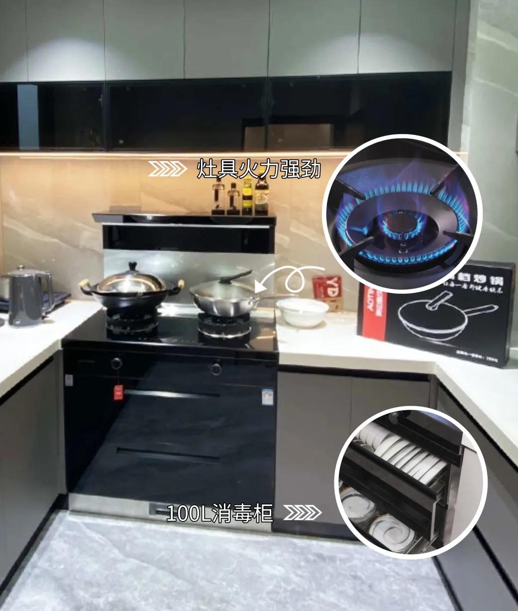 舊廚改造升級現(xiàn)代簡約風,廚電選擇奧田集成灶D3,經(jīng)典黑色外觀,線條流暢,與風完美融合,瞬間提升廚房高級感。