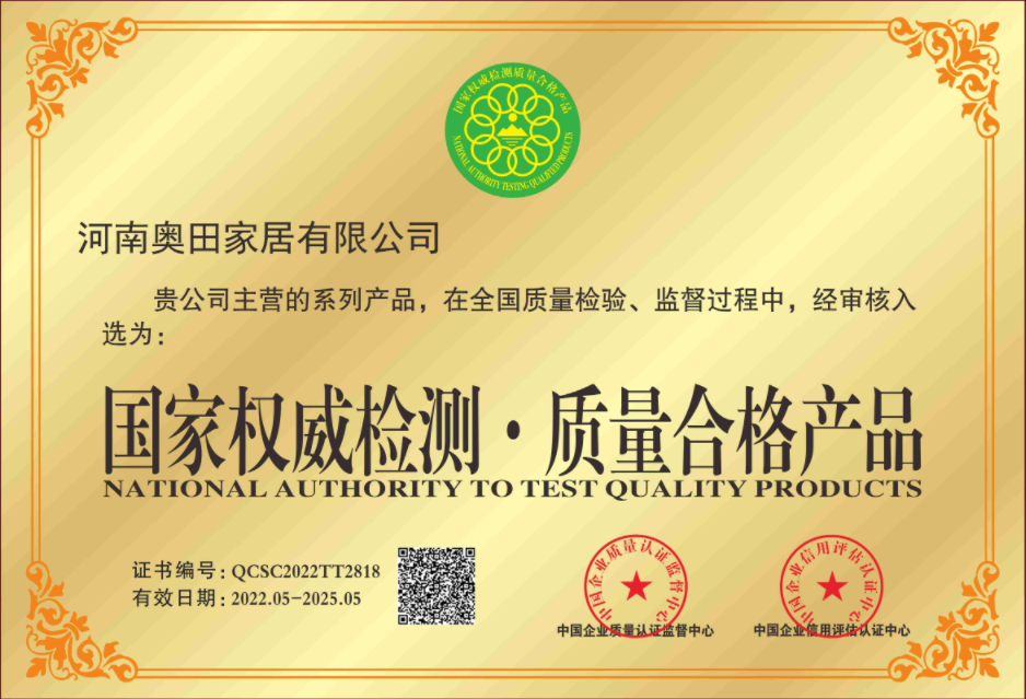 TIME:2022-05-30 來源:奧田電器 奧田家居,榮譽(yù)證書