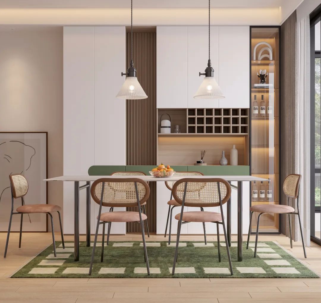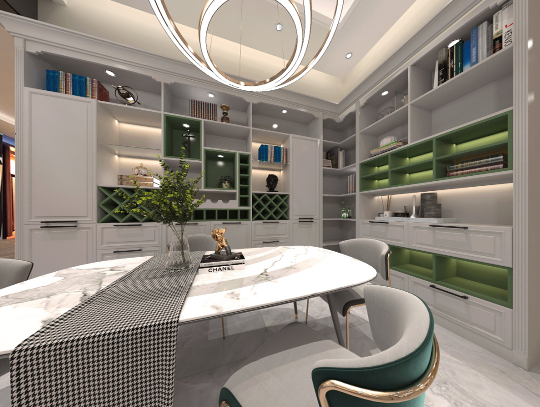 看到這樣的餐廳設(shè)計(jì),首先的感覺就是:愛了。每一處都精雕細(xì)琢,色彩張揚(yáng),卻又溫婉內(nèi)斂,精致細(xì)膩,讓人沉浸其中,在時(shí)尚美觀和清新活力之間徘徊。白和綠的大膽碰撞,既有活力四射的激情,又有寧?kù)o溫馨的氛圍,仿佛置身于生機(jī)盎然的雪域森林。簡(jiǎn)約實(shí)用、創(chuàng)意感十足的設(shè)計(jì),凝聚起整個(gè)空間的視覺焦點(diǎn)。在這樣的餐廳就餐,仿佛可以感到撲面而來(lái)的清新,目光所及的綠色,更讓人心情愉悅。